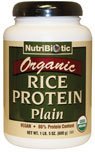 NutriBiotic Organic Rice Protein, Plain Vegan 80% Protein Certified Organic • Certified Kosher • Gluten Free Made without Pesticides, Herbicides, GMOs, or PCBs NutriBiotic Vegan Organic Plain Rice Protein is a high quality, low carbohydrate vegetable protein. This easily digestible protein provides an extensive array of naturally occurring amino acids, the building blocks of protein. Ideal for individuals who suffer from food allergies and digestive difficulties. Boost your nutrition and energy with this healthy and wholesome, protein rich formula! NutriBiotic Vegan Organic Rice Protein is produced by means of a unique enzyme process. A proprietary blend of organic plant enzymes are used to separate the fiber and carbohydrates from the protein portion of the organic, whole grain, sprouted brown rice. Low temperatures used during processing prevent denaturing of the amino acids. NO CHEMICALS are used at any time. Due to this enzyme process, color, taste, and texture may vary. Suggested Use As a protein source, mix one serving into a glass of water or rice milk or add to your favorite recipe. Ingredients Enzymatically processed rice protein from certified organic, whole grain, sprouted brown rice. Free of common food allergens such as soy, milk, eggs, wheat, corn, nuts, yeast, and preservatives. Supplement Facts